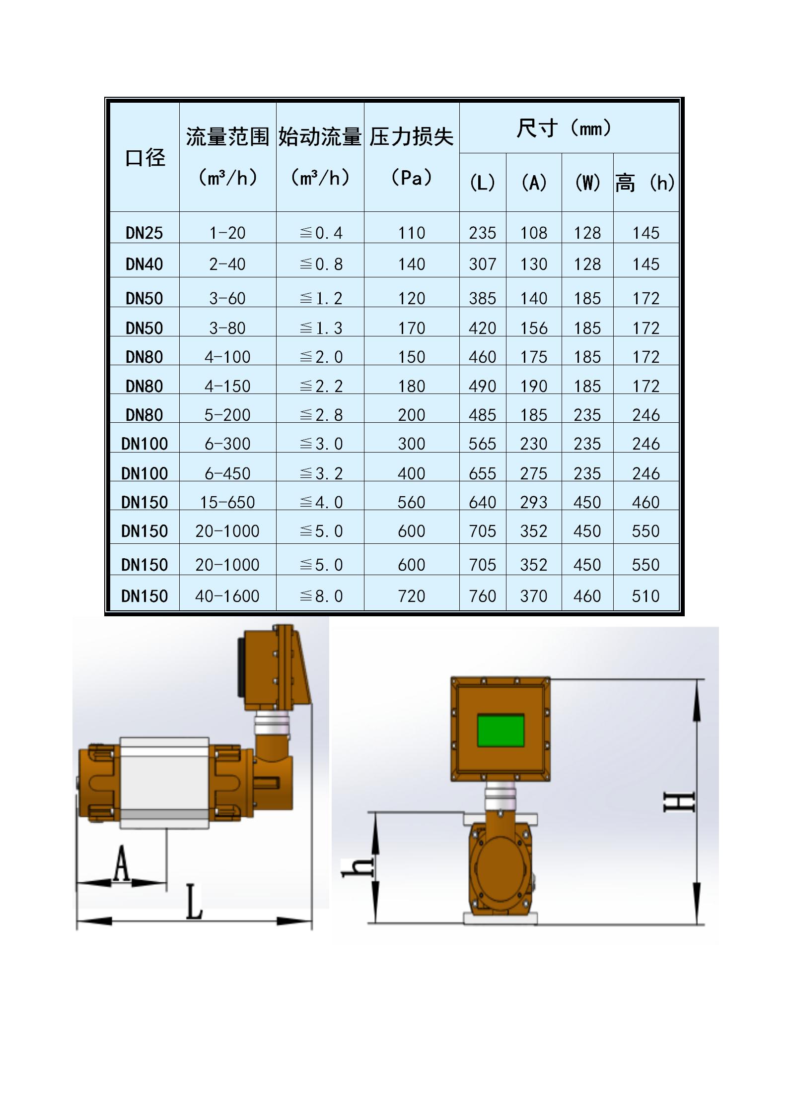 2、始動(dòng)流量低,測量范圍度很寬;不同規(guī)格流量計(jì)的測量范圍度可達(dá)40:1~200:1。